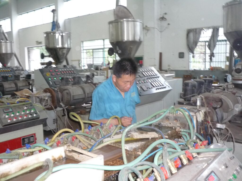 The factory is fully equipped to handle the complete WPC production process, starting from raw material blending, pallet making, extrusion, secondary processing, assembly and right down to packing and loading into the container.