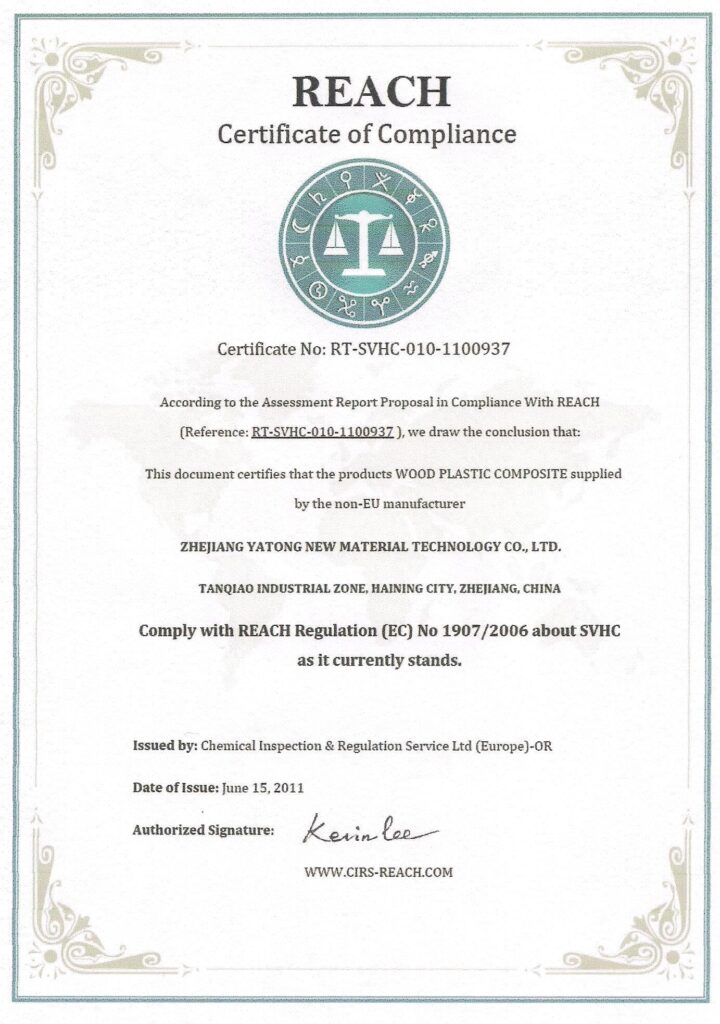 Also, all our WPC products are uniquely accredited to both FSC(Forest Stewardship Council) and GRS(Global Recycling Standards) besides also being certified to meet CE safety standards, as well as REACH standards on non-toxicity.